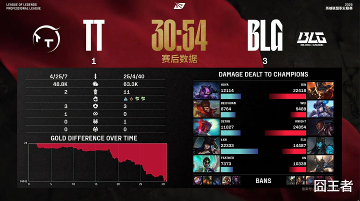 结果第四局比赛,又被BLG打成了单方面的碾压局。30分54秒,解决战斗,TT毫无还手之力。